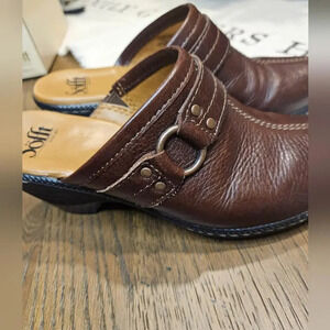 Step into comfort with these stylish Söfft brown leather clogs. Featuring a classic design, these slide-on shoes are perfect for everyday wear. Crafted from soft, supple leather, they ensure all-day comfort and durability. Key features include: