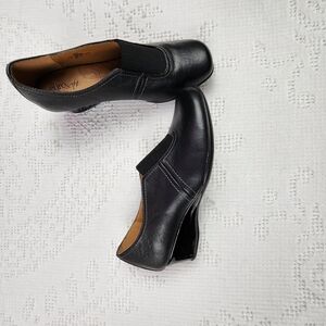 Euro soft black shoes by Sofft. Wedge heels and close toed. Size 6 1/2M. Very gently used. Sold as pictured. I consider all offers.