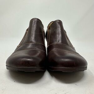 Söfft Shoes Womens 7.5M Brown Leather Upper Lining Slip On Block Heels Round Toe. Good pre-owned condition. Some marks on leather. See pictures for details. See photos for measurements. Ships quickly from smoke-free home.