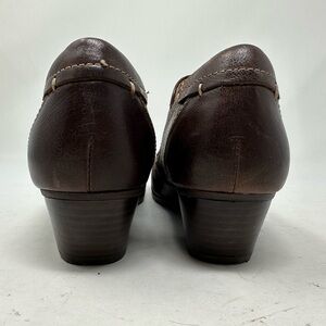 Söfft Shoes Womens 7.5M Brown Leather Upper Lining Slip On Block Heels Round Toe