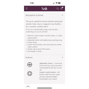 Söfft Vaya Leather Wedge Sandals Adjustable Strap Comfort Soft Footbed Size 9 M