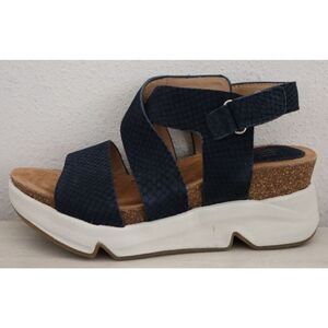 Söfft Women's Sz 6.5M Navy Snake Print Nubuck Charday Strappy Wedge Sandals