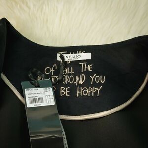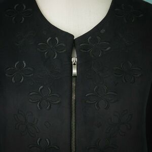 Sfizio 48 Size 10 US Solid Black Floral Embroidered Crew Neck Long Sleeve Full Zipper Closure Stretch Polyester Blend Faux Vegan Suede Coat Jacket NWT Style# 15FA28279994