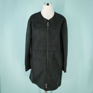 Sfizio 48 Size 10 US Faux Vegan Suede Floral Embroidered Zip Black Long Coat NWT