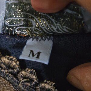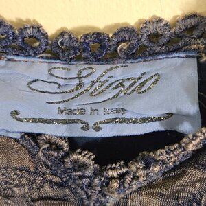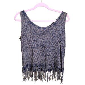 Sfizio Made In Italy Unique Mixed Media Blue Tan Stretch Fringe Tank Top Size M