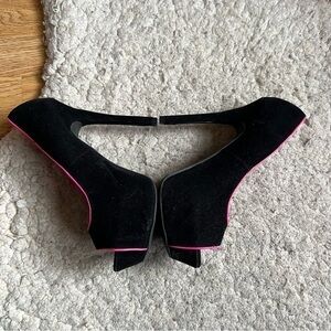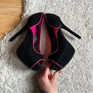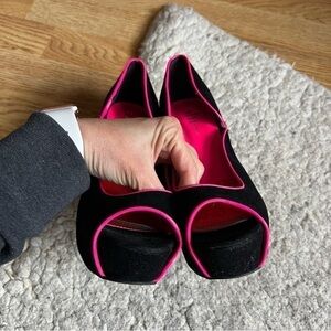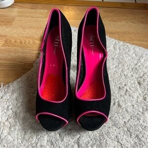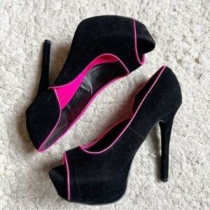 Shï by Journeys: Velvet Black Hot Pink Piping Platform Peep Toe Pumps Size 8.5