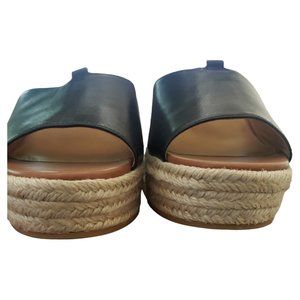 Sh172 Coach Black Wedged Sandals 4"Heels Size 8.5