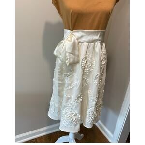 Shabby Apple A-Line Dress Satin Waist Bow Ribbon Detail Sz S Tan Cream Whimsical