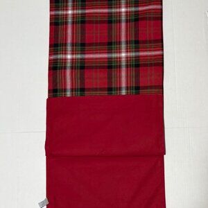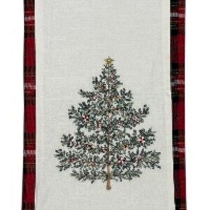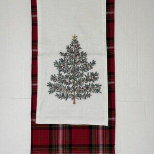 Shabby Chic 2 Piece Christmas Table Runner Embroidered Tree Tartan Plaid NWT