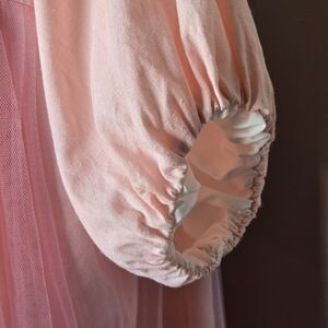 Shabby Chic Cottagecore Fairycore Tulle Overlay Midi Dress with Floral Embroidery in wonderful condition. No flaws. Non-smoking, no pet home. No size/content tag but main fabric appears to be 100% cotton and measures to an approx size Large, however please see approx measurements below for fit. Pictures don't do this dress justice!