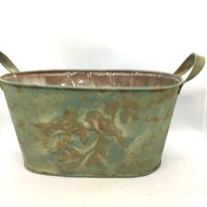 Shabby Chic Birds Tin Planter Storage Organizer NWT