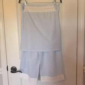 Shabby Chic Blue and White Striped Pajama Set with Lace Trim Size Medium