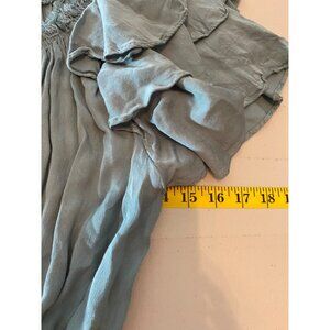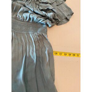 Shabby Chic Dress Bohemian Blue Ruffled Short Sleeve Smocked Waist XS