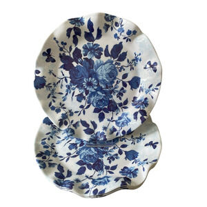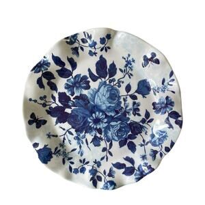 Shabby Chic Floral Melamine Salad Plates 9in Blue White Fluted Edge Set 4