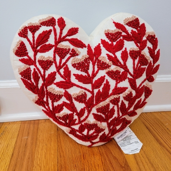 Shabby Chic Heart Shaped Embroidered Throw Pillow Floral Embellished *read*