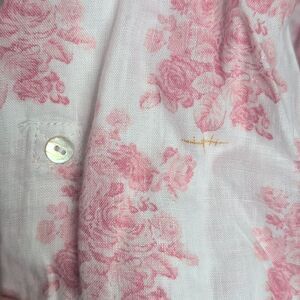 Shabby Chic Large Pink Floral 100% Linen Long Sleeve Button Down Blouse