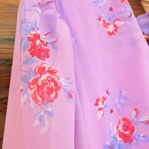 Elegant pink bodysuit with vibrant floral design. Cute ties come from the back, can be tied at front in different ways. Cute for date night with jeans!Ideal for a fashionable statement.