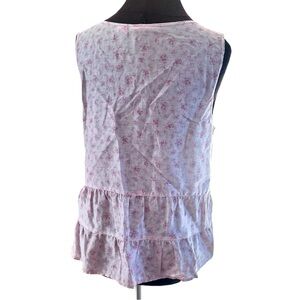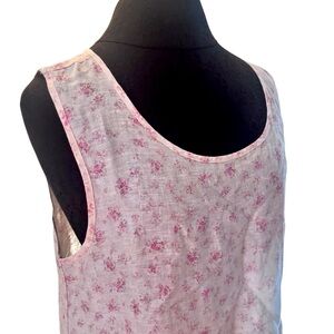 Shabby Chic Linen Floral Pink Sleeveless Top Medium