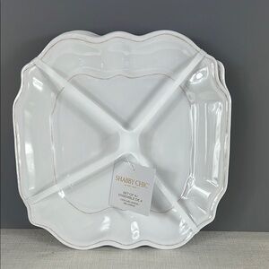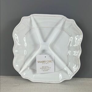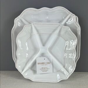 Shabby Chic Melamine Plates 8 pc Set 4 Dinner 4 Salad White Tan Edge NEW