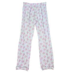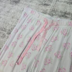 Shabby Chic Pajama Pants Womens Medium Pink Floral Lounge Sleepwear Soft Comfy