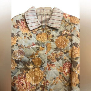 Shabby Chic Quilted Floral Cotton Button Down Jacket