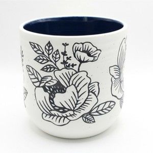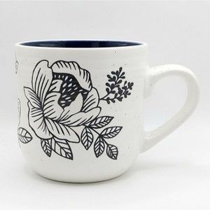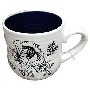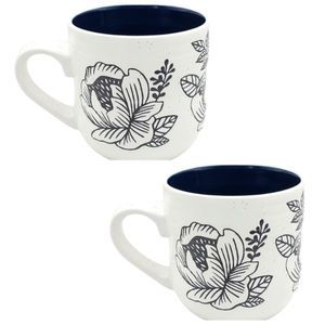 Set of 2 Shabby Chic White And Blue Engraved Garden Ceramic Coffee Mug 16oz