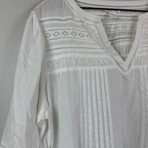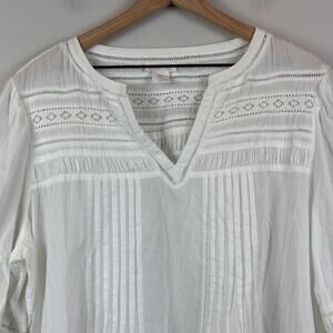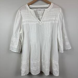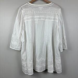 Shabby Chic Top Women 1X White Eyelet Pleated Bell Sleeve Coquette Blouse Boho