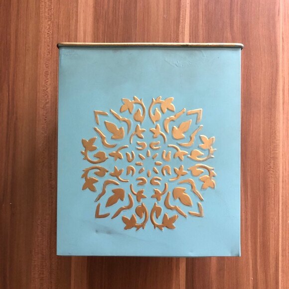 Gold Teal Turquoise Shabby Chique Metal Storage Container Box