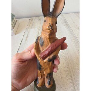 Shabby chic Easter bunny rabbit statue figurine carrot vtg style stands