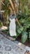 It’s pretty dress may have begun. It’s life as a nightgown. It is a lovely dotted Swiss fabric with tiny sprigs of flowers. It has a small back which allows that pit to pit to stretch to 21 inches in excellent condition.