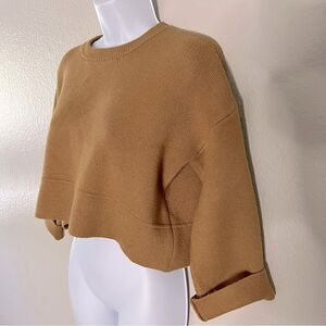 Shaci Women’s LS Cropped Sweater~Camel/Carmel Brown Sweater Oversized Small