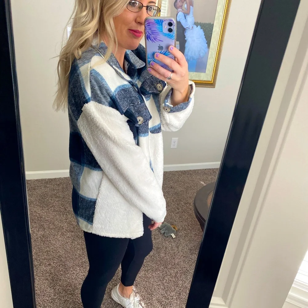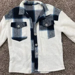 Like new, SO SOFT, boutique shacket. Flannel style print and faux wood functional buttons. Very flattering, just a little too big for me. Purchased a year ago and worn maybe three times. Size small.