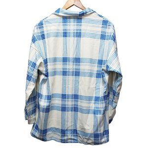 Shacket, blue & cream color, size Medium, lightweight, spot inside by label as shown, this is a new item and came with this spot