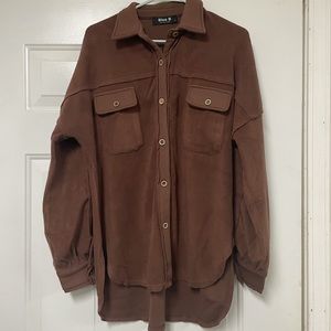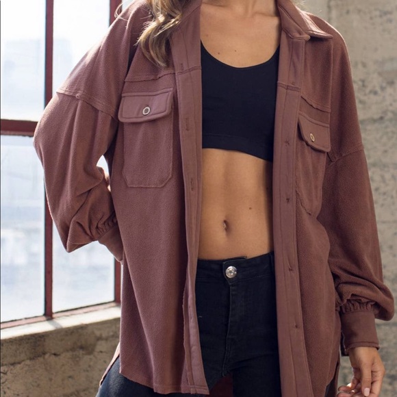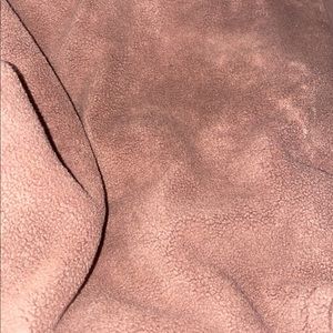 This is sooo comfortable!! The outside is a soft, fleece-like material. The color is a brownish purple