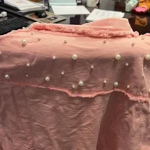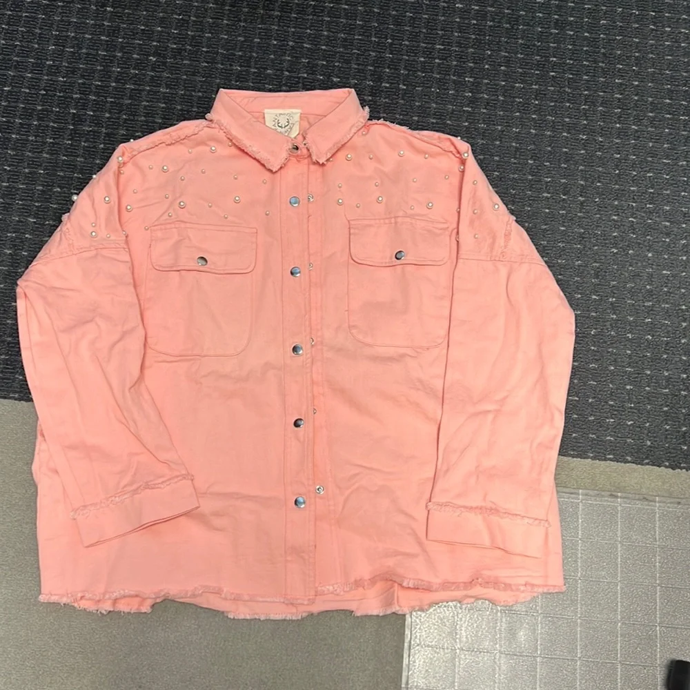 Pink, denim, pearl studded shacket - never worn. Size L but fits more like an XL.