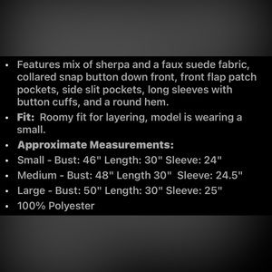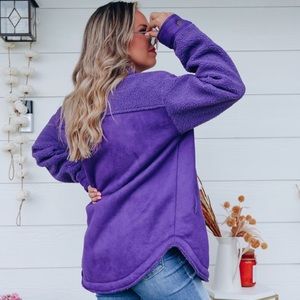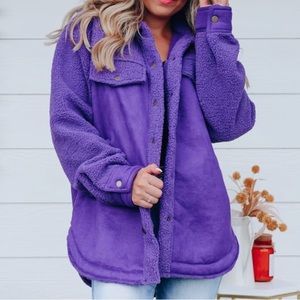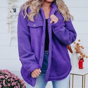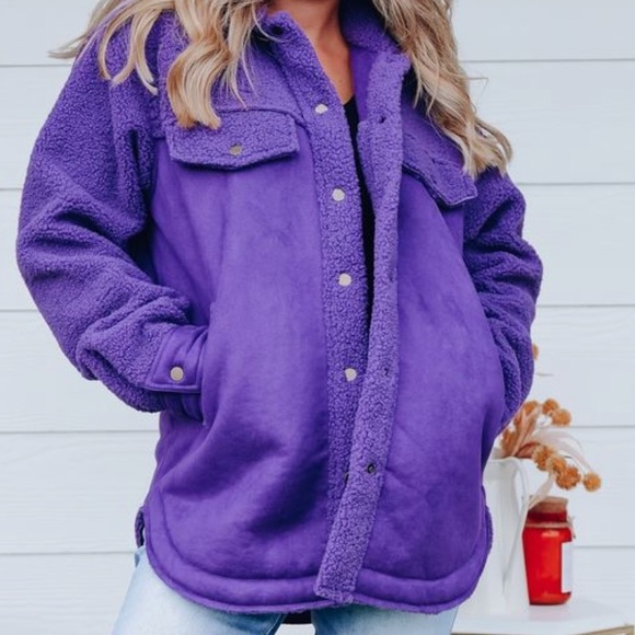 Purple Sherpa and faux suede schacket never worn. Still has original packaging, only opened to try on. I’m 5,1 so it look a little frumpy on me