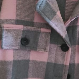 It's a super cute new shacket ,small fits bigger , gray/pink , pockets on both sides add this beauty to your closet .