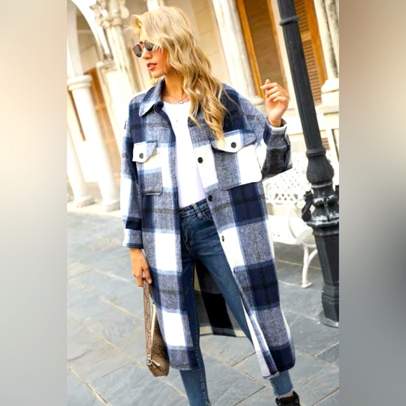 This Shacket, bold print, long length, and cozy.