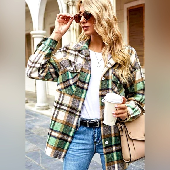 This Shacket is perfect for a pulled-together casual look. Bold plaid print, long sleeves, shirt length with pockets.