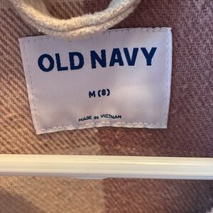 Pink and cream shacket. Brown buttons and cute front pockets