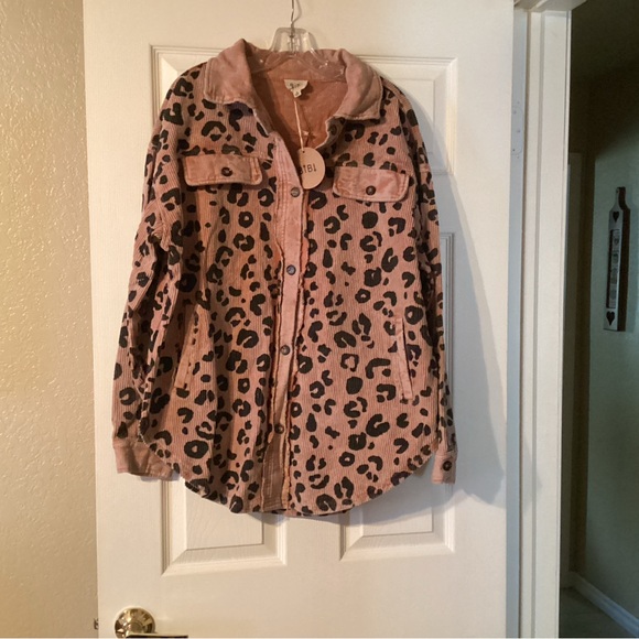 Bibi brand corduroy distressed shacket with working buttons and pockets. Looks great with denim or leggings.