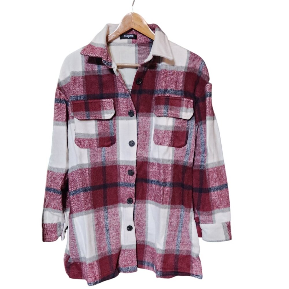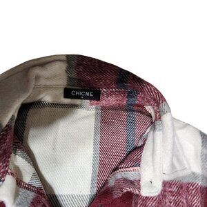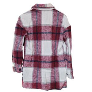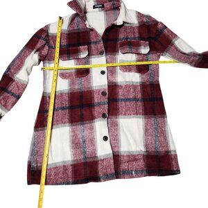 Plaid shacket, size Medium, white, gray and burgundy, this is a heavier weight shacket Approximately 20" pit to pit 17J795
