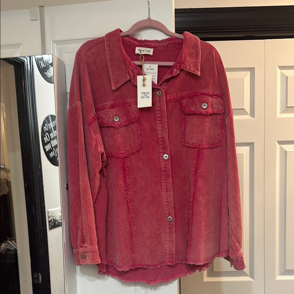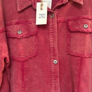 Stylish red corduroy shacket. Features button-up front and chest pockets. Perfect for casual wear. Brand new never used worn smoke free him