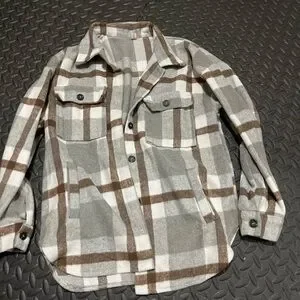 Super cute and trendy! Size small! Tanish/ brown, gray and white. Looks cute with any outfit!