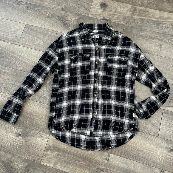 This can be described as a Shacket, it is a heavier material than a normal flannel. Gently worn. Size Medium.
