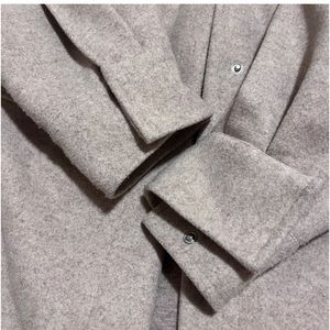 Reduced from $25. This is oversized, so it can easily fit a person who usually wears a S/M (4-5) size. It is a neutral, heavier weight shacket than most out there - so it keeps you warm. Thick, so has tons of wear left. It has very slight piling but it’s hardly noticeable due to this nicely textured fabric - you can’t even see it in the pics. The metal like snap buttons are concealed once buttoned up, see last pic. First 3 pics are similar items to show fit and styling ideas. Item for sale is very similar to cover photo (except for slight color difference and, front pockets are open, slip style on the item I’m selling, not flap over style as shown in the cover photo). Pics 4-9 are the actual shacket for sale. This is a must have piece - a neutral, versatile piece for any closet! It could be dressed up or down.