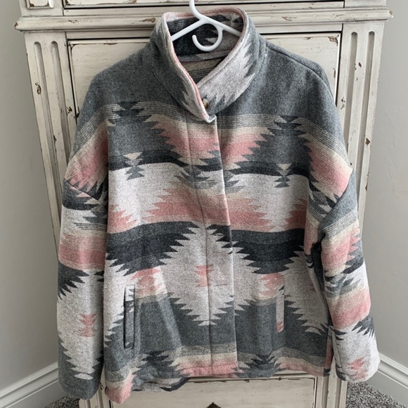 Vintage Aztec Print Shacket Button Down Jacket. Boho. Button closure. Two front pockets. Perfect for the spring, fall and winter. Machine wash. Size XL. EUC.