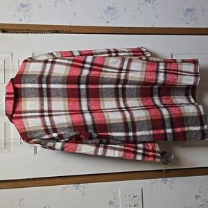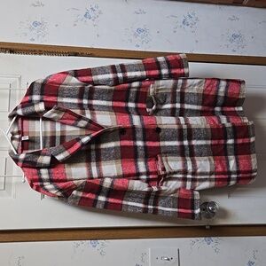 Long Shacket with 2 deep pockets in the front and 2 buttons in the front. Perfect with boots! 100% Polyester. So cute and cozy!