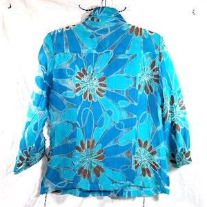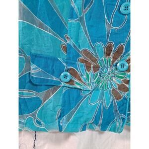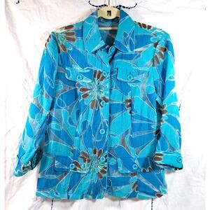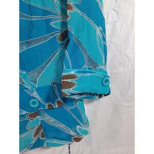 Shacket Shirt Blue Black Burnout Women's Size M L Floral 3/4 Sleeve Semi-sheer.