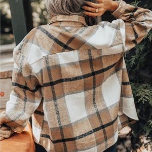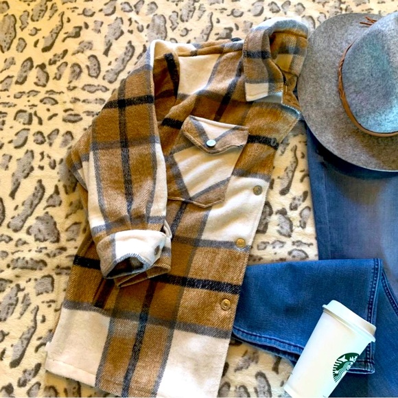 Soft brushed flannel material. Plaid, oversized with side & chest pockets.